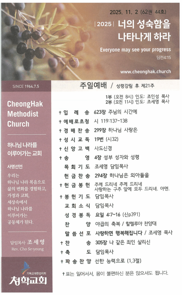 11월12025주보 Category: 주보By 송성회2025년 11월 01일 Author: 송성회 Post navigationPreviousPrevious post:251026 직장속 헌신예배NextNext post:25년 11월 2일 교회소식Related posts25년 10월 26일 주보2025년 10월 25일25년 10월 19일 주보2025년 10월 18일25년 10월 12일 주보2025년 10월 11일25년 10월 5일 주보2025년 10월 04일25년 9월 28일 주보2025년 09월 27일25년 9월 21일 주보2025년 09월 20일