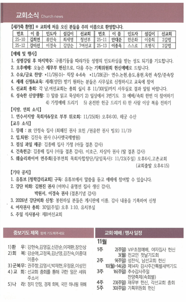 11월222025주보 Category: 주보By 송성회2025년 11월 22일 Author: 송성회 Post navigationPreviousPrevious post:251116 추수감사주일 연합예배NextNext post:25년 11월 23일 교회소식Related posts25년 11월 16일 주보2025년 11월 15일25년 11월 9일 주보2025년 11월 08일25년 11월 2일 주보2025년 11월 01일25년 10월 26일 주보2025년 10월 25일25년 10월 19일 주보2025년 10월 18일25년 10월 12일 주보2025년 10월 11일