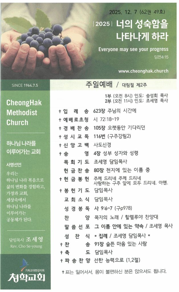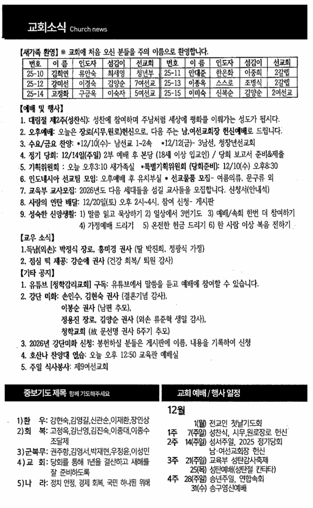 12월62025주보 Category: 주보By 송성회2025년 12월 06일 Author: 송성회 Post navigationPreviousPrevious post:25년 12월 7일 교회소식Related posts25년 11월 30일 주보2025년 11월 29일25년 11월 23일 주보2025년 11월 22일25년 11월 16일 주보2025년 11월 15일25년 11월 9일 주보2025년 11월 08일25년 11월 2일 주보2025년 11월 01일25년 10월 26일 주보2025년 10월 25일
