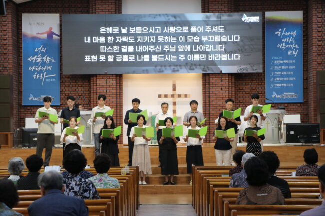 1. 성령강림후 제5주 (성찬식) 성찬에 참여하며 말씀 안에 성장하는 믿음 되기를 기도합니다. 2. 오후예배 오늘은 안나찬양대 헌신으로, 다음 주는 글로리아 조가찬양단 헌신으로 드립니다. * 오늘 오후예배는 엄미영 선교사(캄보디아)께서 설교 및 선교보고 해 주십니다. 3. 수요/금요 특별찬양 * 7/16(수) – 옥련 1~4속 * 7/18(금) – 장로부부(시무/원로) 4. 새가족 수료 2부 예배 후 새가족실 (수료자: 김전각, 한명숙) 5. 교육부…